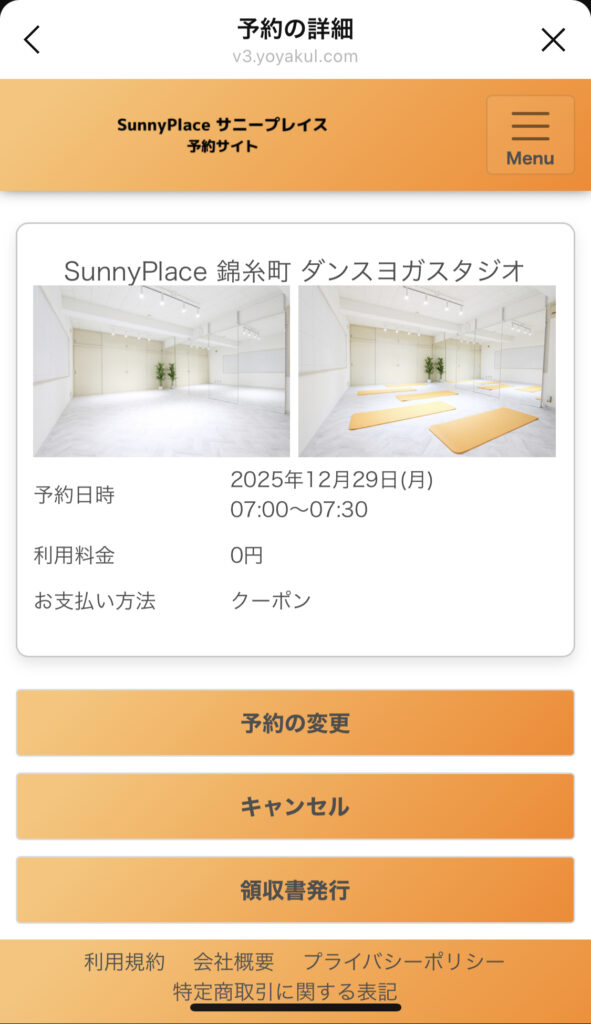 ①右上にあるメニューの中から「予約の詳細・変更・キャンセル」をクリックしてください。