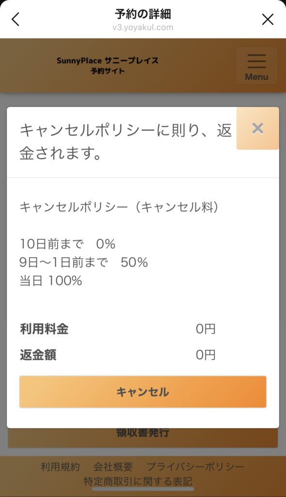 キャンセルポリシーに基づき、予約日の7日前からキャンセル料・変更料が発生しますので、予めご了承ください。